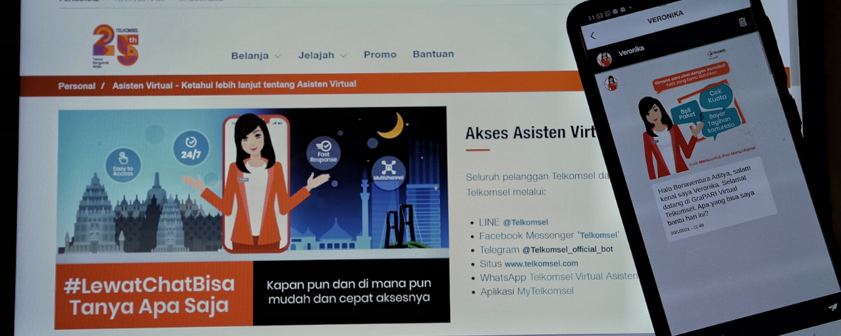 Asisten virtual merupakan turunan dari artificial intelligence (AI) yang dilengkapi dengan serangkaian bahasa pemrograman dengan basis natural language processing (NLP) dan mesin pembelajaran yang memungkinkan terjadinya interaksi layaknya individu pada umumnya. Sebagai perusahaan yang mengedepankan teknologi terkini dan prinsip customer-centricity, Telkomsel pun tak mau ketinggalan dalam mengadopsi teknologi asisten virtual, yang kemudian diwujudkan melalui asisten virtual bernama Veronika.