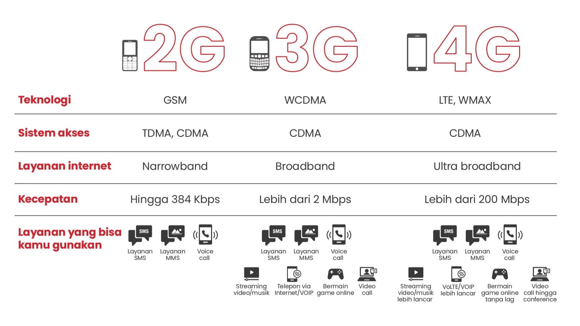 Seperti kita ketahui, sebelum 4G hadir di Indonesia, masyarakat menggunakan teknologi 2G dan 3G dalam mengakses internet lewat perangkat smartphone. Tentu saja bila dibandingkan dengan 4G, kecepatan internet yang disuguhkan lewat kedua teknologi sebelumnya tidak sebanding atau bisa dibilang cukup lambat.