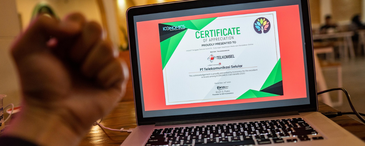 Jakarta, 8 Desember 2020 - Upaya Telkomsel dalam mendampingi masyarakat untuk menghadapi masa-masa sulit di tengah pandemi COVID-19 melalui kontribusi nyata mendapat apresiasi dalam ajang Iconomics CSR Award 2020. Telkomsel berhasil memperoleh penghargaan pada kategori Telekomunikasi dengan kriteria Inisiatif Tanggap Darurat Covid-19 - Dukungan Kesehatan Medis dan Pendidikan Online. Apresiasi tersebut telah diterima Telkomsel dalam acara penganugerahan yang disertai seminar daring bertajuk “Strengthening Social Responsibility in Pandemic Era” pada 4 Desember 2020.
