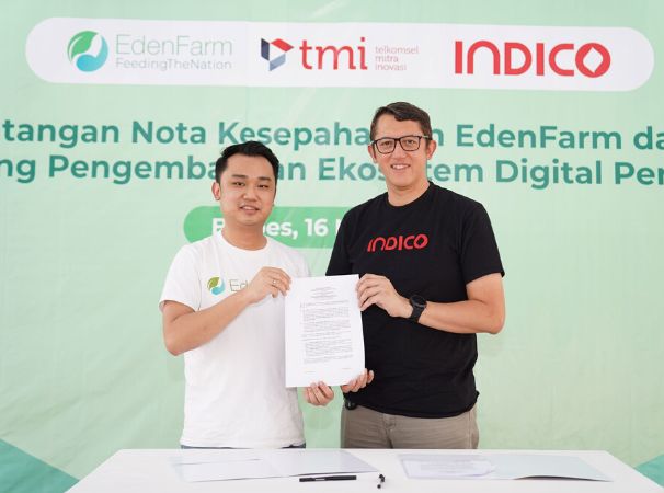 Kolaborasi EdenFarm dan INDICO dimantapkan melalui penandatanganan nota kesepahaman (Memorandum of Understanding / MoU) antara David Setyadi Gunawan, selaku Founder & CEO EdenFarm dan Andi Kristianto selaku CEO INDICO, Kamis (16/3) di Eden Collection Facility (ECF) Brebes, Jawa Tengah. Penandatanganan MoU juga disaksikan Mia Melinda, selaku CEO Telkomsel Mitra Inovasi, dan James sebagai Chief of Technology EdenFarm. Dalam nota kesepahaman disebutkan bahwa kedua perusahaan akan menjalin hubungan bisnis untuk implementasi teknologi platform digitalisasi pertanian untuk pengelolaan dan monitoring kegiatan pertanian, guna meningkatkan produktivitas mitra tani EdenFarm, dan mendukung pengembangan ekosistem pertanian digital di Indonesia.