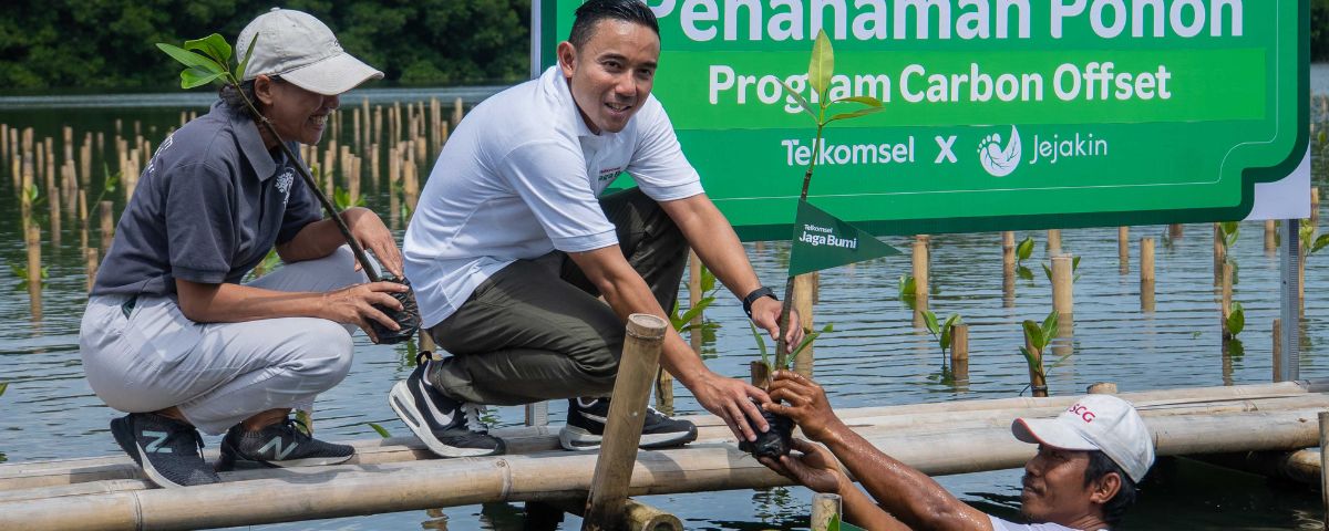 Carbon offset merupakan berbagai upaya yang dilakukan untuk menyerap carbon footprint (jejak karbon) yang kita hasilkan dan memitigasi dampak-dampak negatif tersebut. Salah satu upaya carbon offset yang dapat kita lakukan adalah dengan mengadopsi pohon dan mendukung keberlangsungan hidup masyarakat adat yang menjaga hutan. Sedangkan berbagai aktivitas manusia, mulai dari penggunaan bahan bakar fosil, pengubahan fungsi lahan, pengolahan limbah, hingga pekerjaan industri, menghasilkan carbon footprint, atau jejak karbon, berupa emisi gas yang dapat menyebabkan efek rumah kaca, seperti gas karbondioksida (CO2) dan gas polusi lainnya di atmosfer. Dalam hitungan dasawarsa hingga jutaan tahun ke depan, carbon footprint yang berlebih akan menimbulkan dampak negatif terhadap iklim, suhu udara, hingga curah hujan, dan memengaruhi hidup kita semua. Inisiatif Telkomsel Jaga Bumi melangsungkan kolaborasi dengan platform Jejakin melalui Program Carbon Offset, yang bertujuan mengimbangi dampak carbon footprint kita dengan penanaman pohon yang dapat menyerap CO2 dan memproduksi oksigen (O2).