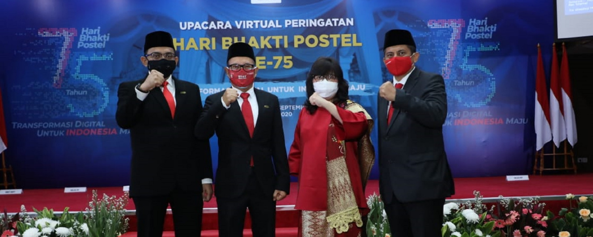 Jakarta, 29 September 2020 - Presiden Joko Widodo memberikan Penganugerahan Tanda Kehormatan Satyalancana Wirakarya kepada empat insan Telkomsel yang telah berkontribusi besar dalam kemajuan sektor telekomunikasi di Indonesia. Menteri Komunikasi dan Informatika Republik Indonesia Johnny G. Plate menyematkan langsung tanda kehormatan tersebut dalam Upacara Virtual Peringatan Hari Bhakti Postel ke-75 bertema “Transformasi Digital untuk Indonesia Maju” pada 28 September 2020.