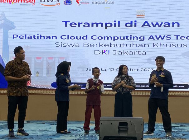 Jakarta, 19 Oktober 2023 - Melanjutkan peran sebagai social impact enabler yang senantiasa berupaya menciptakan dampak sosial positif terhadap kemajuan masyarakat, Telkomsel bergabung bersama Amazon Web Service (AWS), yang berkolaborasi dengan Yayasan Sagasitas Indonesia dalam program "Terampil di Awan". Program strategis tersebut bertujuan mengakselerasi kapabilitas sekaligus pemenuhan kebutuhan talenta digital Indonesia melalui pelatihan pengenalan cloud computing (komputasi awan) dan dasar-dasar pemrograman website, kepada pelajar, tenaga pengajar, dan komunitas dengan berbagai latar belakang. Dengan semangat inklusivitas, keberagaman, dan kesetaraan, program dimulai dengan Pelatihan Digital bagi lebih dari 250 siswa-siswi berkebutuhan khusus dari beberapa Sekolah Luar Biasa (SLB) dan SMA di wilayah Jakarta dan sekitarnya, (12/10). Program Terampil di Awan yang akan berlangsung hingga Desember 2023 menjadi bagian kolaborasi aktivitas Corporate Social Responsibility (CSR) Telkomsel dan diimplementasikan secara berkelanjutan sebagai perwujudan prinsip Environmental, Social, and Governance (ESG) perusahaan.