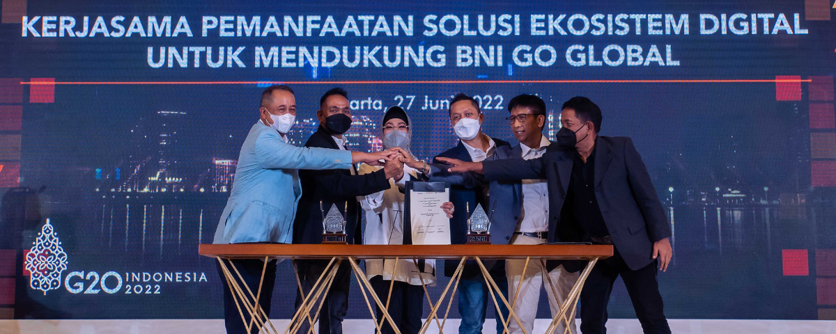 Jakarta, 27 Juni 2022 – Telkomsel terus memperkuat perannya sebagai leading digital telco dengan mengoptimalkan aset ekosistem digital yang dimiliki untuk mendukung transformasi digital di lintas sektor industri. Hal tersebut kini diwujudkan Telkomsel dengan menjalin kolaborasi bersama PT Bank Negara Indonesia (Persero) Tbk (BNI) dan PT M Cash Integrasi Tbk (MCAS Group) dalam memperkuat ekosistem digital di sektor perbankan melalui inisiatif kerja sama pemanfaatan solusi digital dalam mendukung BNI Go Global. Kolaborasi yang terjalin antara Telkomsel, Bank BNI, dan MCAS Group tersebut ditandai dengan penandatanganan nota kesepahaman yang berlangsung di Jakarta, (27/6).
