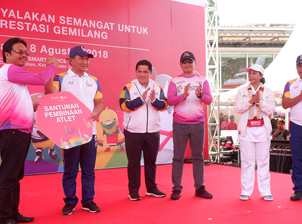 Penyerahan dukungan ini diserahkan secara simbolis oleh Direktur Enterprise & Business Service Telkom Dian Rachmawan kepada Ketua INASGOC, Erick Thohir dengan disaksikan oleh Menteri Badan Usaha Milik Negara Republik Indonesia Rini Soemarno.