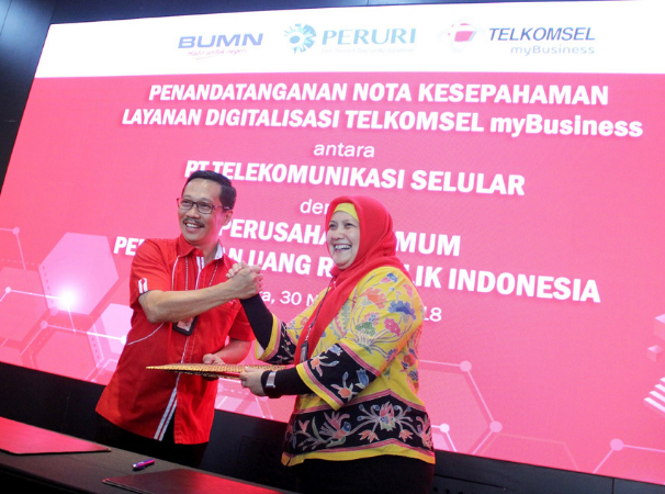 Jakarta, 30 November 2018 – Hari ini Telkomsel menandatangani Memorandum of Understanding (MoU) dengan Perusahaan Umum Percetakan Uang Republik Indonesia (Perum Peruri) di GraPARI Telkom Group, Jakarta. Melalui kerjasama ini, Telkomsel akan menyediakan berbagai solusi digital kepada BUMN penyedia layanan pencetakan dan sistem keamanan tersebut yang meliputi Telkomsel FleetSight, transaksi digital LinkAja dan LBA (location based advertising), serta solusi IoT (internet of things) yang dihadirkan untuk mendukung bisnis Digital Security Perum Peruri.