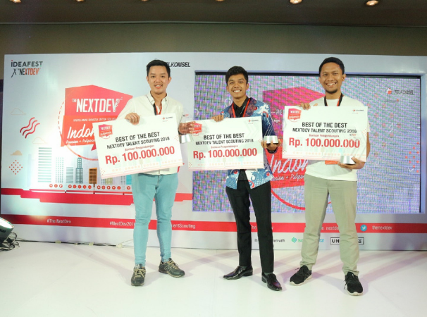 Jakarta, 27 Oktober 2018 – Telkomsel The NextDev 2018, kompetisi yang mendorong anak muda Indonesia untuk berkarya lewat teknologi, telah sampai pada puncaknya. Setelah melewati berbagai tahapan seleksi sejak bulan april 2018, Fishgo, Garda Pangan dan Hello Beauty akhirnya terpilih menjadi tiga pemenang yang diumumkan di ajang festival kreatif terbesar Indonesia, IdeaFest. Ketiga aplikasi terbaik ini dinilai memiliki kemampuan untuk memberikan dampak social terbesar (social impact) yang mampu mensolusi bagi masalah-masalah yang ada di tengah-tengah masyarakat.