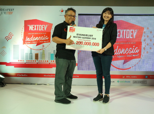 20 tim peserta The NextDev Academy melalui tahapan Assessment, Engagement, Enhancement, Establishment, hingga Inauguration. Setelah melewati berbagai tahapan tersebut, para pemenang NextDev Academy atau yang disebut Evangelist memperoleh reward berupa managemnet trip dan seed money.