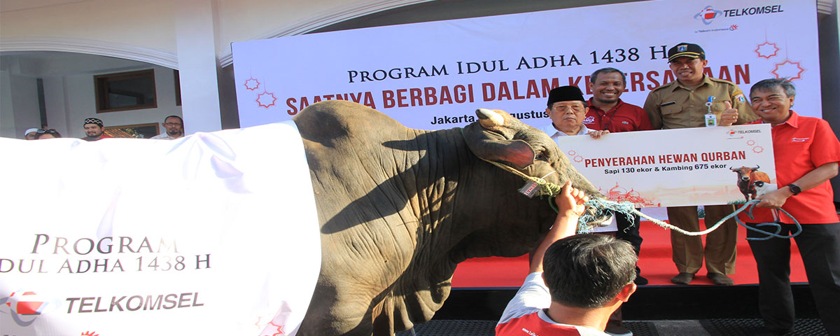 President Director of Telkomsel Ririek Adriansyah said, "Telkomsel donates sacrificial animal to be distributed to the community, especially around Telkomsel's operational area. Our commitment is to be a company that always care about the society and its surroundings, hence we strive to give more benefit to them by handing over this sacrificial animal to the rightful and needy people. "