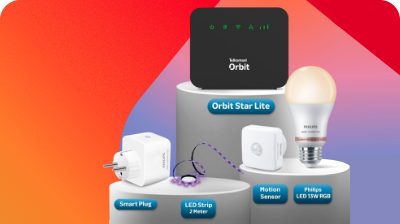 Telkomsel Orbit Lite + Philips Led Bulb 13W RGB (1 piece) + Phillips Led Strip (2 meters) + Phillips Smart Plug (1 piece) + Phillips Motion Sensor (1 piece)