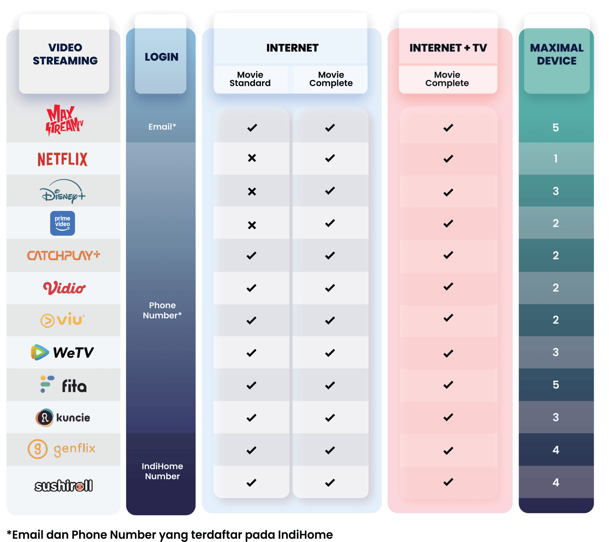 For content that can be enjoyed on STB, only the IndiHome Movie Standard or IndiHome Movie Complete bundling packages.