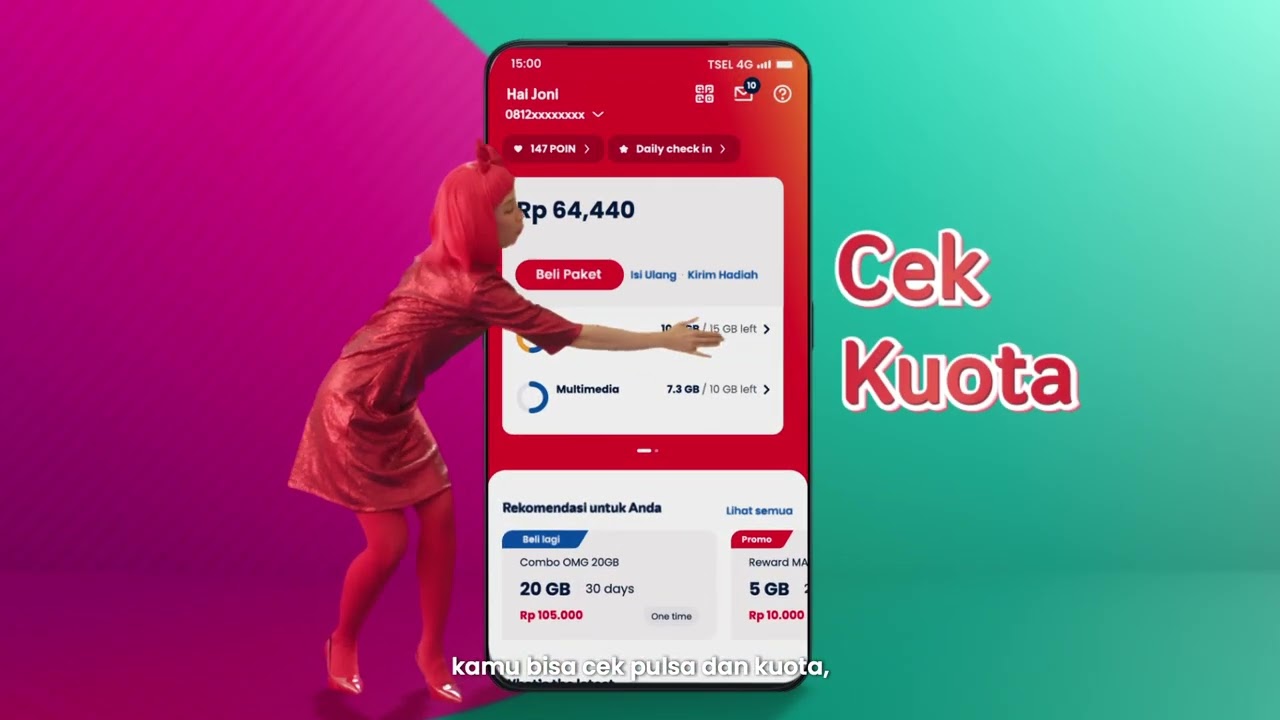 Now you can see all the important info about your account: credit balance, remaining data, Telkomsel Poin—everything!