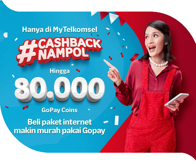 Purchase your favorite package for a minimum of Rp10,000 on the MyTelkomsel App using GoPay and get cashback of up to Rp80,000—a special 80th Indonesian Independence Day treat!