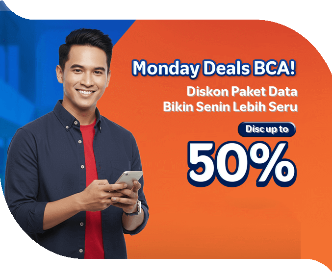 Enjoy price OFF for certain internet package purchases via MyBCA and BCA Mobile apps this Monday only!