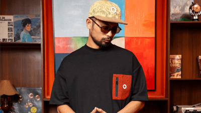 Versi yang lebih stealth dan maskulin. T-shirt hitam ini menonjolkan kemewahan bahan Danbowl Gradasi 290 gsm yang solid. Saku dada berbahan Jacquard merah bermotif menjadi pusat perhatian, merepresentasikan sinergi warna SIMPATI dan pola Othman.