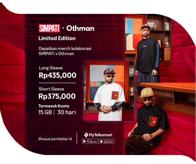 The SIMPATI Othman Package 15GB 30 Days is a collaboration between SIMPATI and Othman, consisting of a 15GB data package valid for 30 days, along with a Limited-Edition Short Sleeve T-Shirt or Limited-Edition Long Sleeve T-Shirt, only via MyTelkomsel App.
