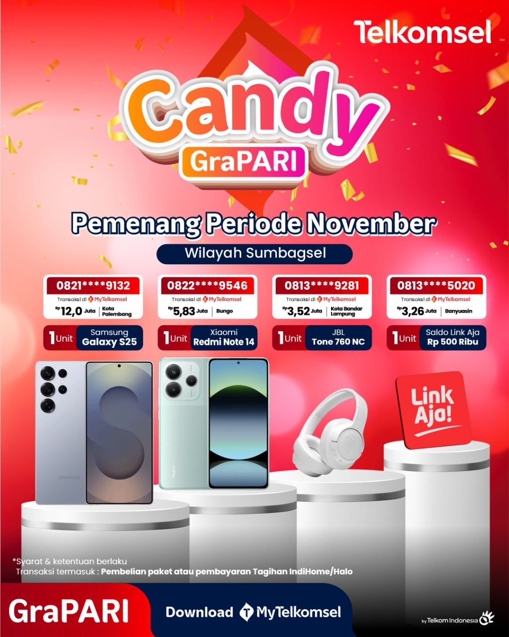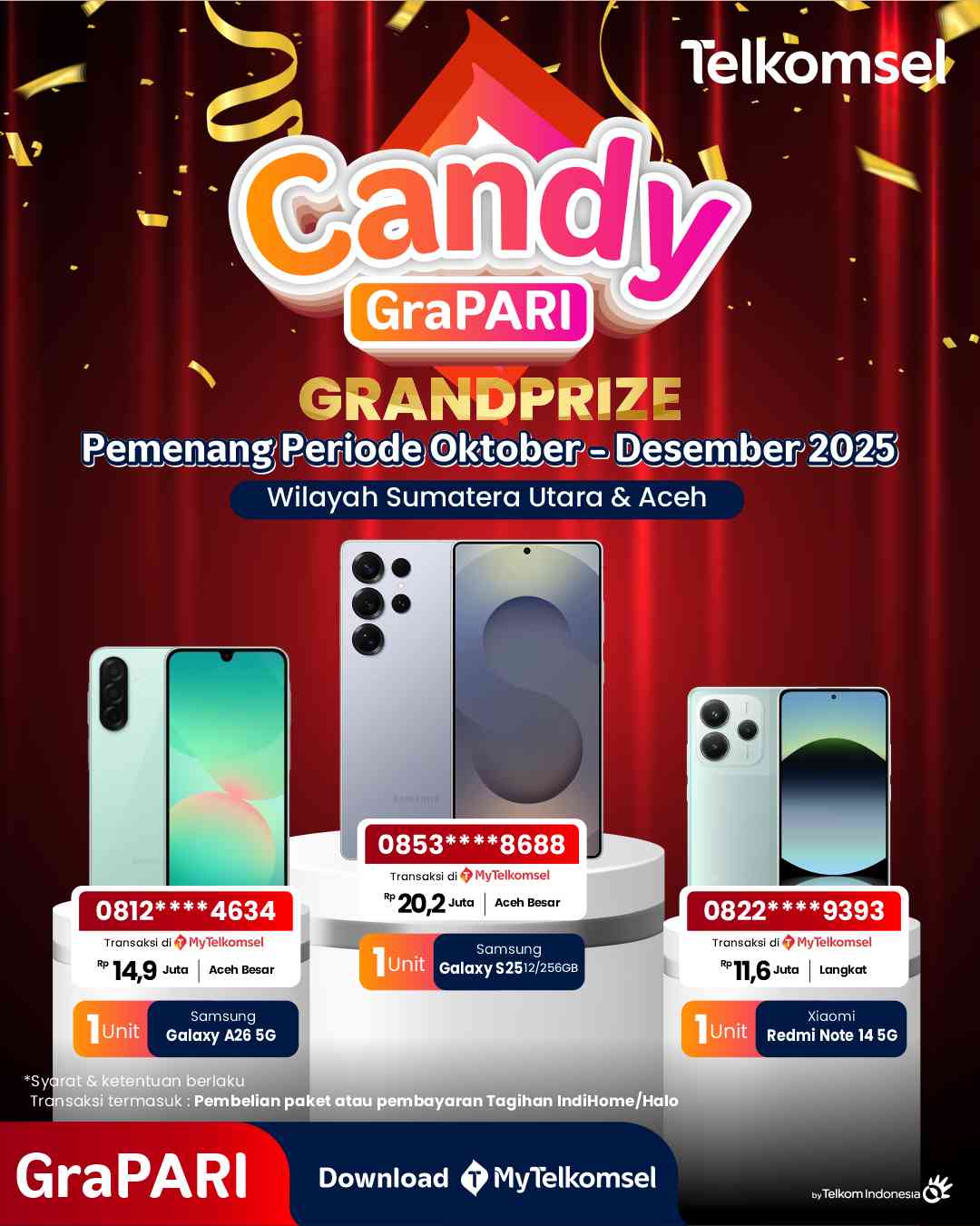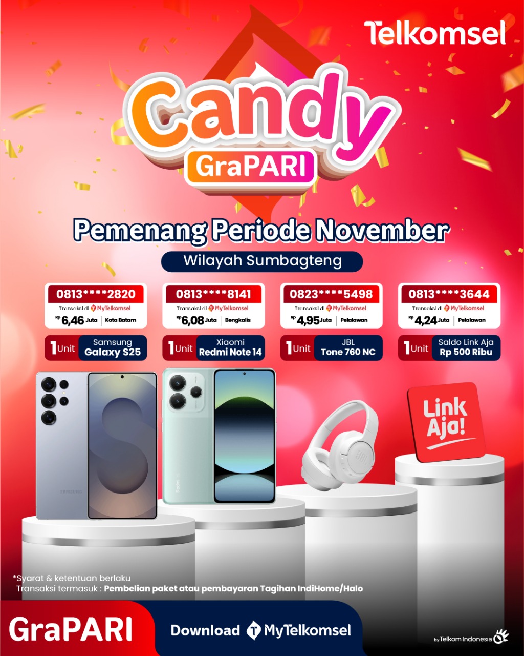 Special for customers in Sumatra area! Download MyTelkomsel App and start making transactions such as package purchase, Halo payment, and IndiHome payment to win a door prize.