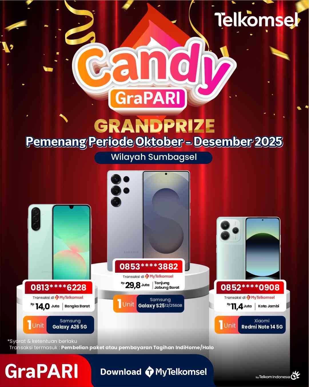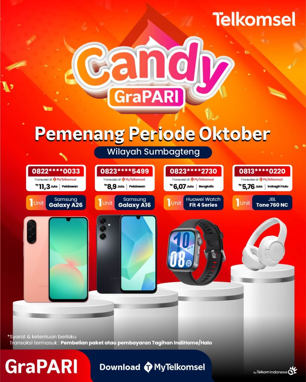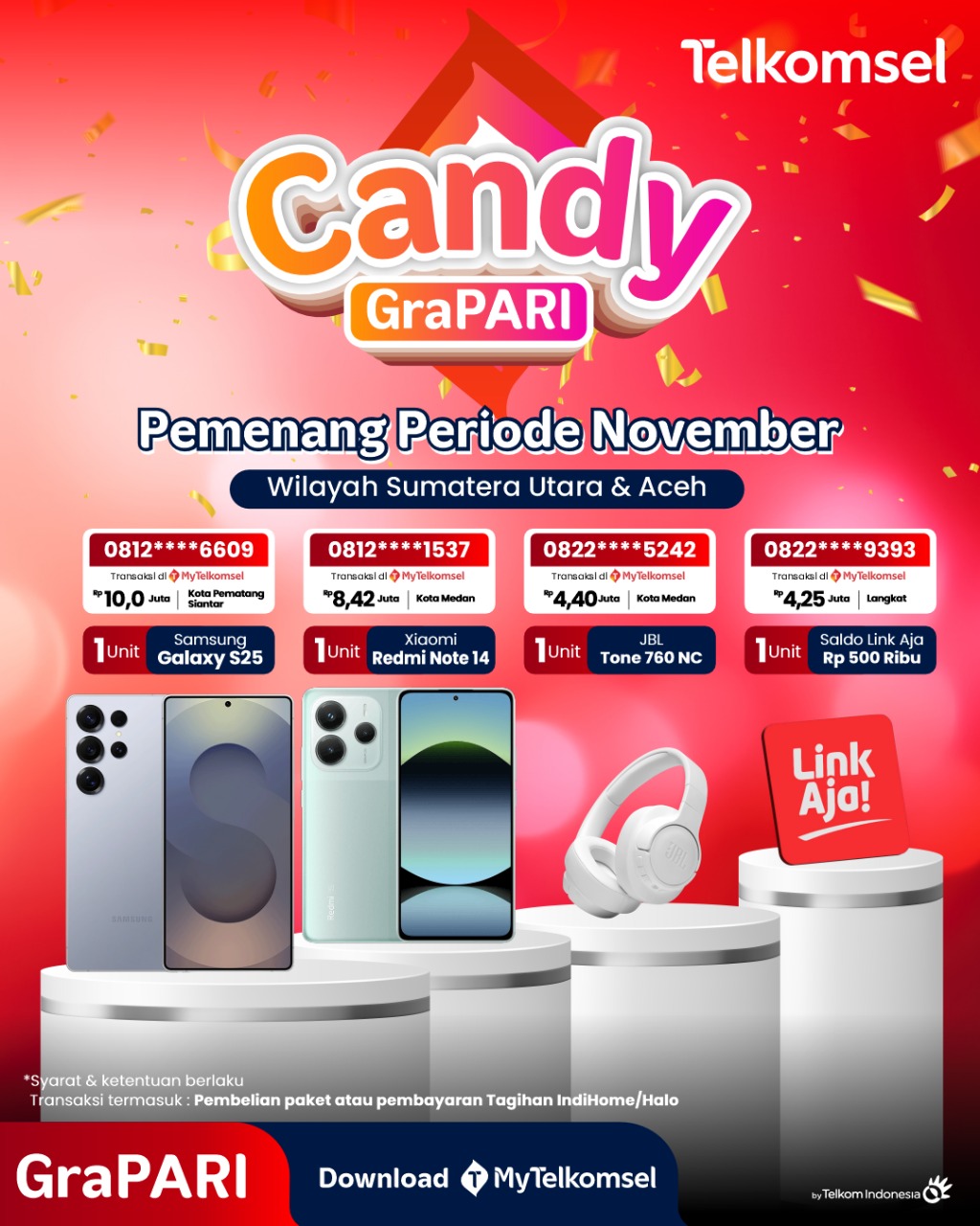 Special for customers in Sumatra area! Download MyTelkomsel App and start making transactions such as package purchase, Halo payment, and IndiHome payment to win a door prize.