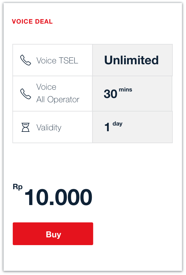 Voice Deal Package is a special package for prepaid customers (simPATI, KARTU As, Loop) in the form of special unlimited voice packages to fellow Telkomsel numbers + additional minutes to other operators with a starting price of Rp10,000.