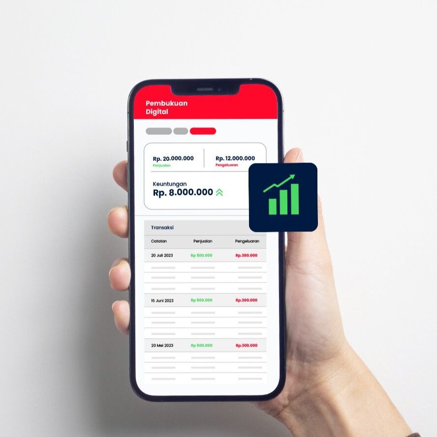 Pembukuan Digital menyediakan sistem akuntansi terintegrasi dengan Point of Sale (POS), memungkinkan UMKM untuk mencatat transaksi dan menghasilkan laporan keuangan secara digital. Lebih lengkap, fitur utamanya termasuk kemudahan dalam transaksi kasir, otomatisasi laporan keuangan, pembuatan invoice, dan pengelolaan hutang piutang, yang semuanya dirancang untuk memudahkan UMKM dalam mengelola keuangan dan penjualan.