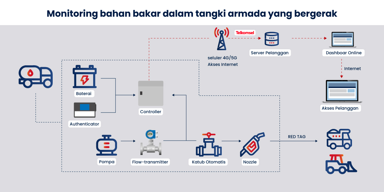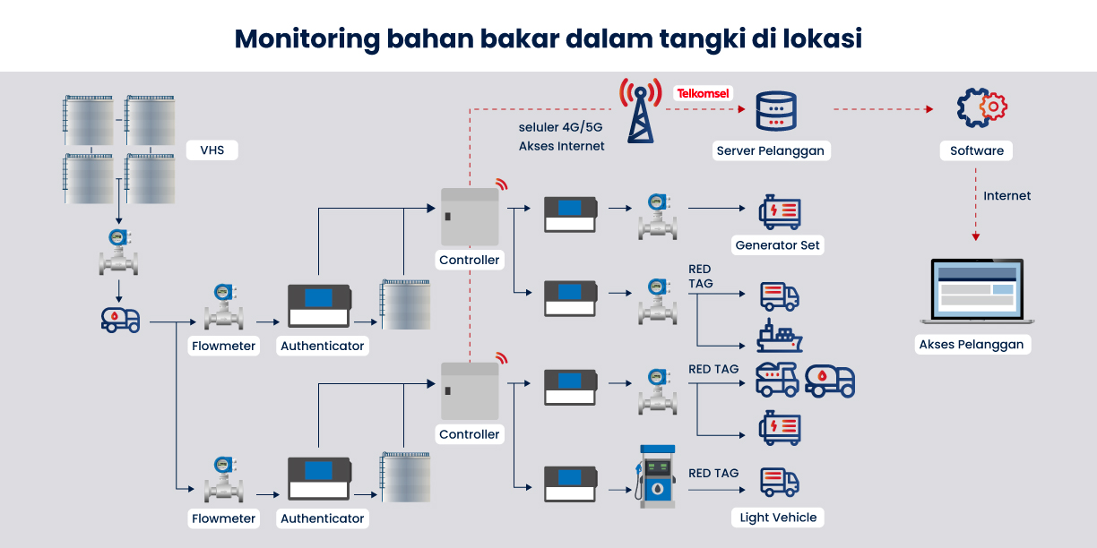 Jenis perangkat bahan bakar, seperti flowmeter dan dispenser dapat dipasang sensor dan MCU untuk ditarik datanya secara real-time via dashboard, sehingga dapat dimonitor melalui web.
