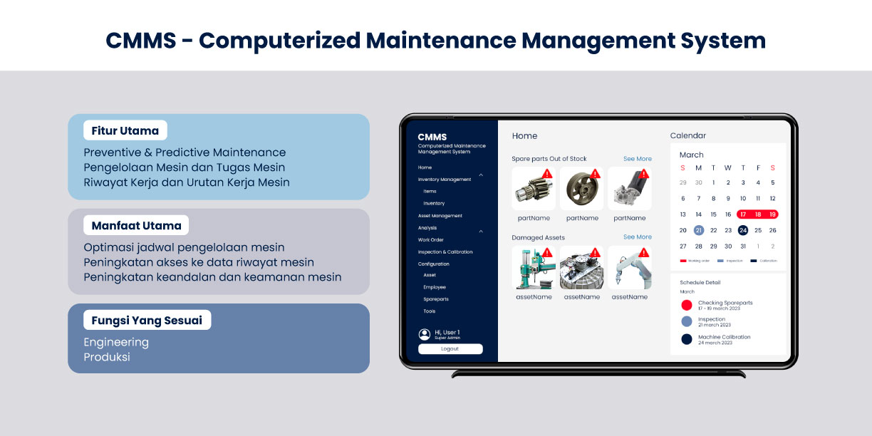 Solusi Smart Manufacturing CMMS (Computerized Maintenance Management System) menawarkan kumpulan solusi dengan konektivitas di perangkat.