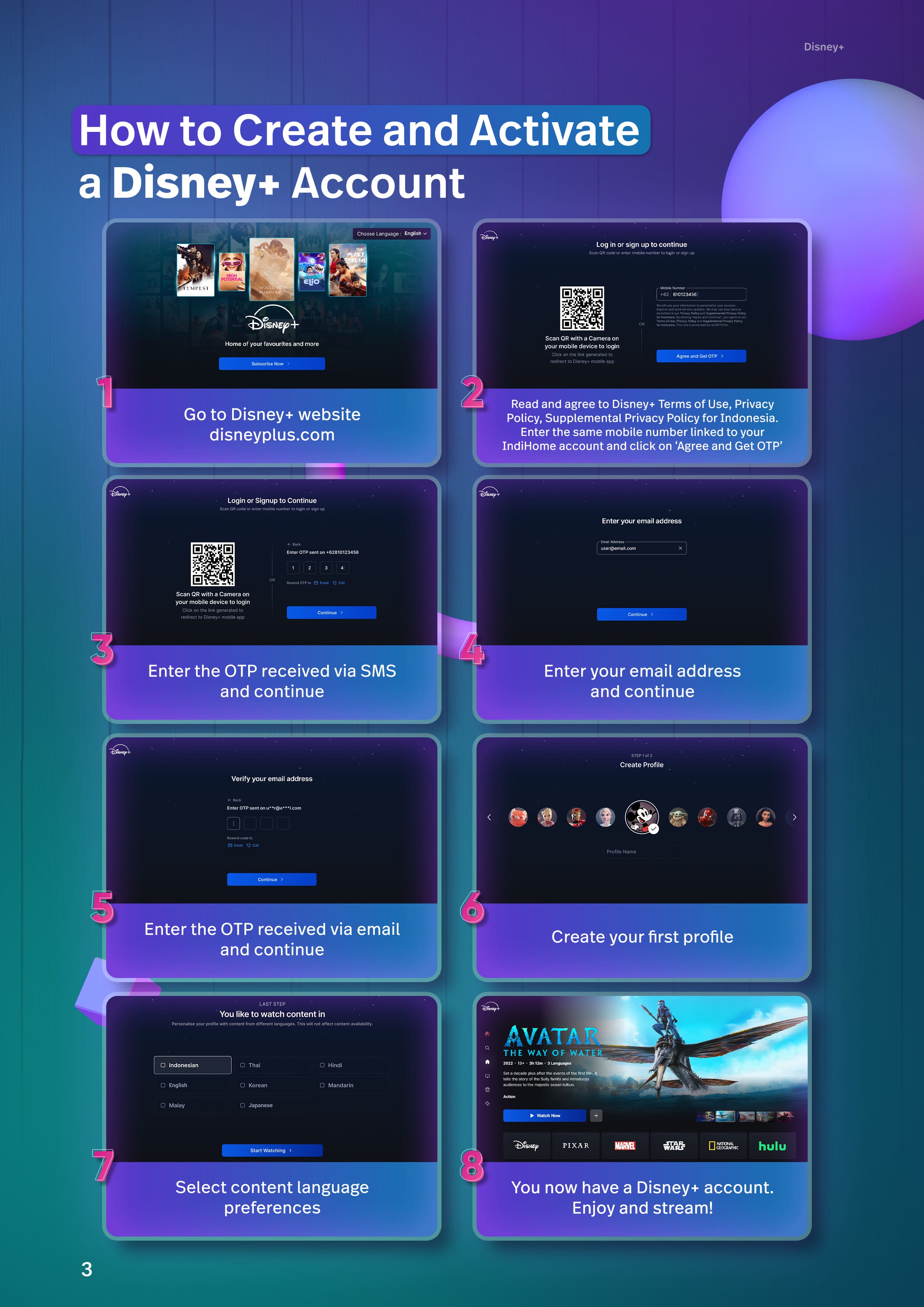 Ikuti cara membuat dan mengaktifkan akun Disney+.