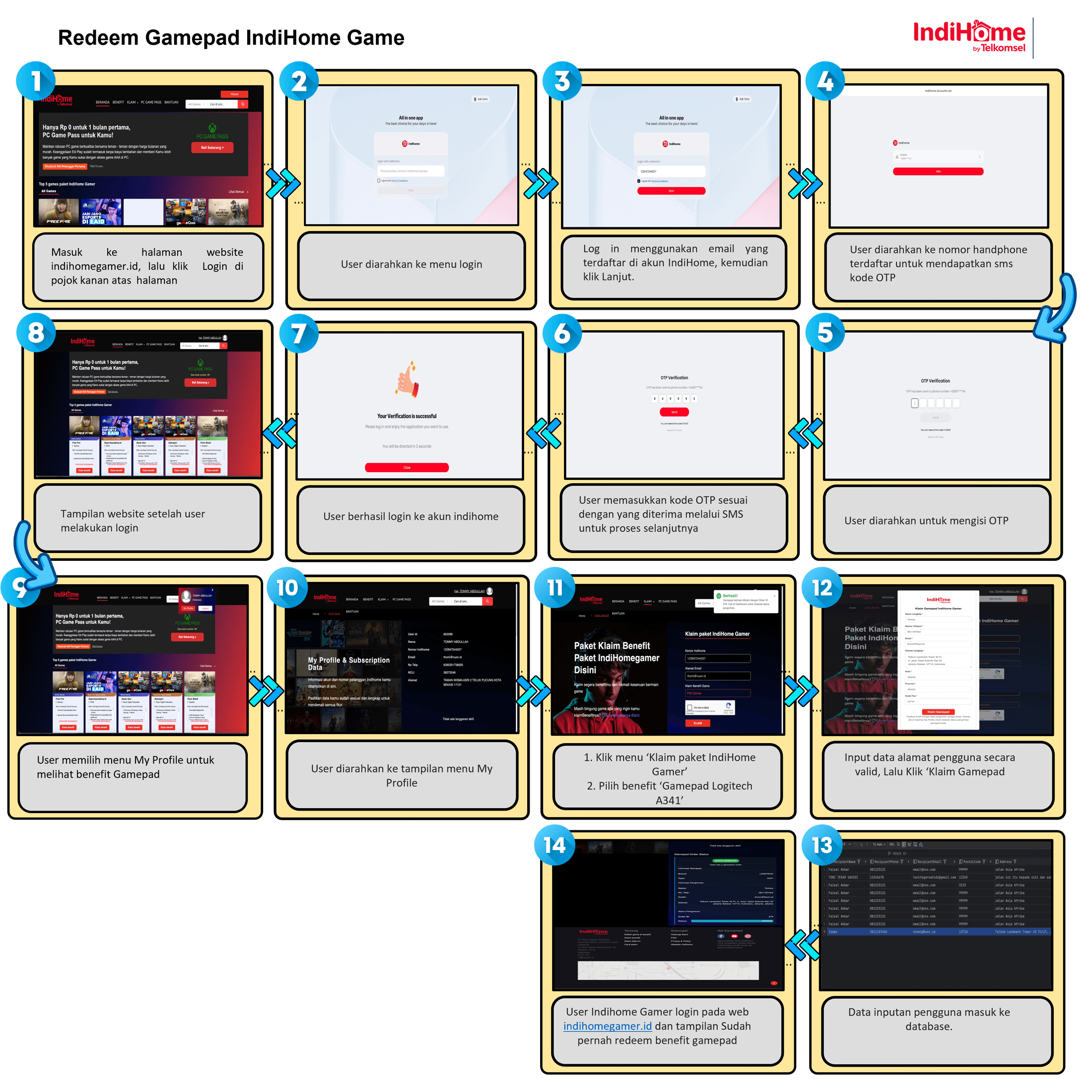 Input alamat Anda yang valid, lalu klik “Klaim Gamepad”. Login pada web indihomegamer.id dan Anda akan melihat tampilan konfirmasi penukaran benefit Gamepad.