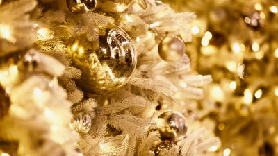 Kalau kamu ingin membuat pohon Natal yang ada di rumahmu terlihat glamor dan berkilau, kamu bisa menggunakan aneka dekorasi, mulai dari gantungan pohon, slinger, sampai artificial flowers yang didominasi oleh warna emas.
