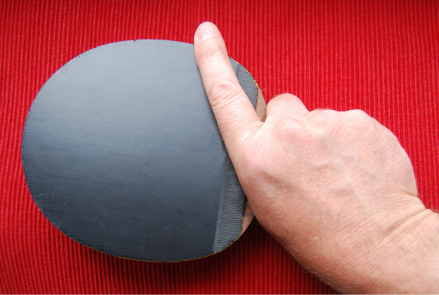 Jari kelingking, jari manis, dan jari tengah melingkar di bagian pegangan bet, sedangkan jari telunjuk menyentuh tepi karet. Pegangan bet juga terselip di antara jari telunjuk dan ibu jari.