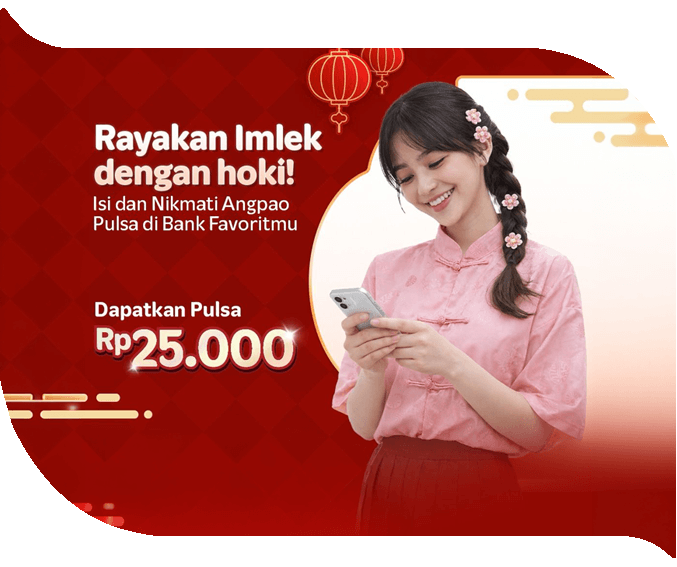 Promo eksklusif untuk pembelian paket data #HematLengkap atau Omni min. Rp150.000 melalui channel apa saja untuk mendapatkan benefit spesial Imlek di Bank BNI, Bank Mandiri, Bank DKI, Bank Nagari, Bank Mega, Bank BJB, Bank Jatim, Bank Riau Kepri Syariah, Bank Sulselbar, Bank Sumut, Bank Jateng, BTN, Bank Papua, Bank Jambi, Bank Kalteng, Bank Muamalat, Bank NTT, Bank SulutGO, Bank BPD Bali, Bank Kalsel, Bank Kalbar, Bank BJB Syariah, Bank BPD DIY, Bank Kaltimtara, Bank Lampung, Bank Mantap, BSI, Allobank.