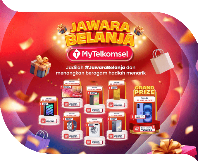 Penawaran spesial untuk pelanggan di area Pamasuka (Papua, Maluku, Sulawesi, Kalimantan). Perbanyak pembelian paket Games, Nonton, Musik, Telepon & SMS, Roaming dan Internet dll. di aplikasi MyTelkomsel dengan metode pembayaran fintech, banking, Telkomsel SmartPay, dll (selain metode pulsa) untuk menangkan hadiah menarik setiap hari!