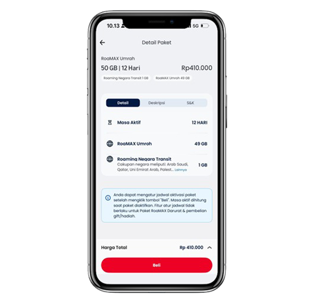 Aktifkan paket RoaMAX Umrah melalui aplikasi MyTelkomsel atau channel lainnya.
