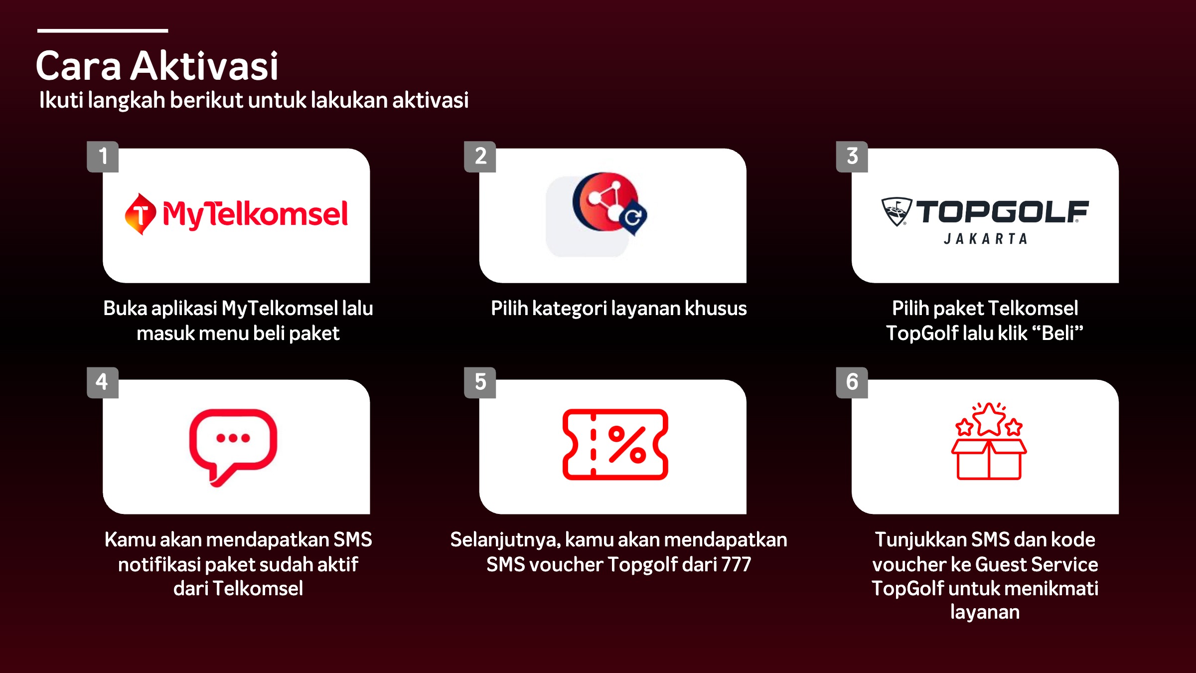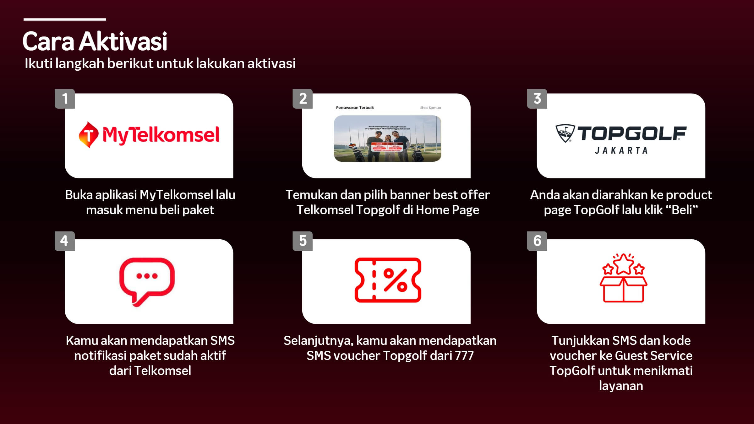 Mekanisme mendapatkan produk kolaborasi Telkomsel x Topgolf untuk pelanggan SIMPATI & Halo adalah sebagai berikut: