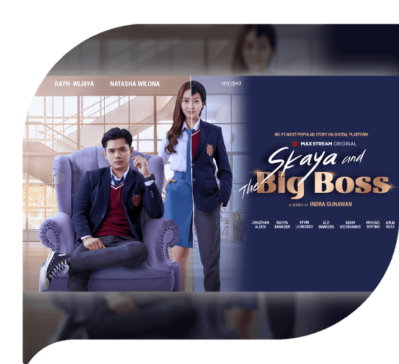 MAXfriends! Siapa nih yang udah nungguin Skaya and The Big Boss versi live action? Worry no more, karena sekarang kamu udah bisa menikmati MAXstream Original Series: Skaya and The Big Boss! Buat kamu yang belum tau, Skaya and The Big Boss adalah sebuah novel dan juga cerita Wattpad yang populer banget karya Marsella Tina. Di Wattpad aja, cerita Skaya ini udah lebih dari 10 kali mendapatkan peringkat 1 di berbagai kategori, seperti: romance, teenlit, fiksiremaja, dll. Gak heran kalau banyak orang yang nungguin banget cerita Skaya dijadiin series atau film. Pokoknya cerita ini cocok banget buat kamu si penggemar film remaja atau romantis yang unyu-unyu gitu, hihi… Mau tau ceritanya seperti apa?