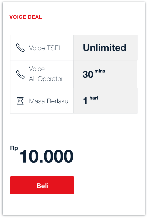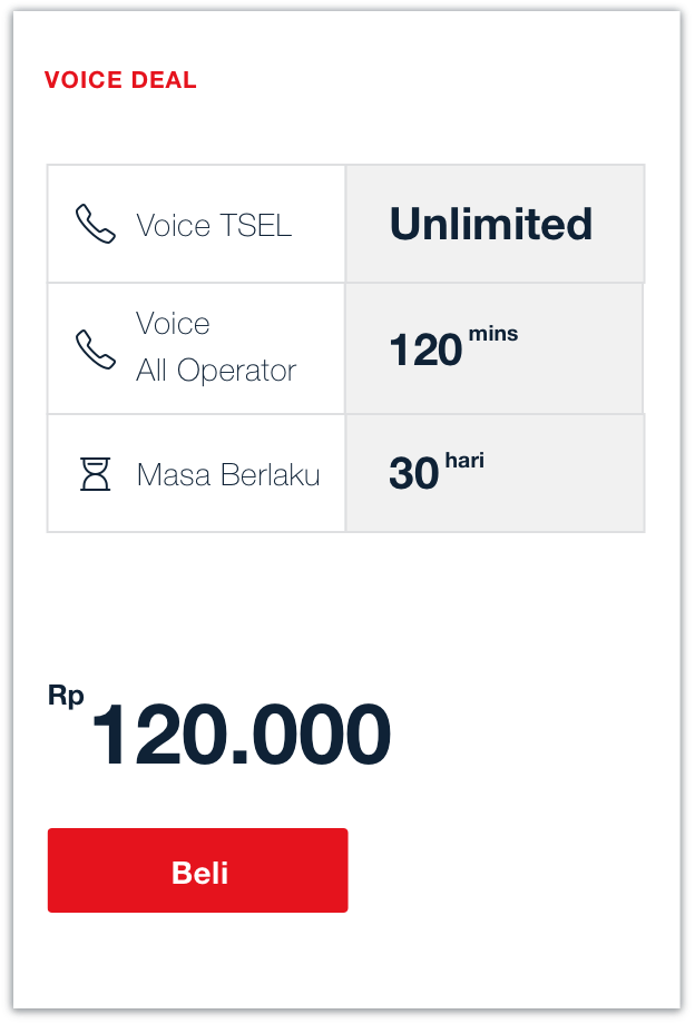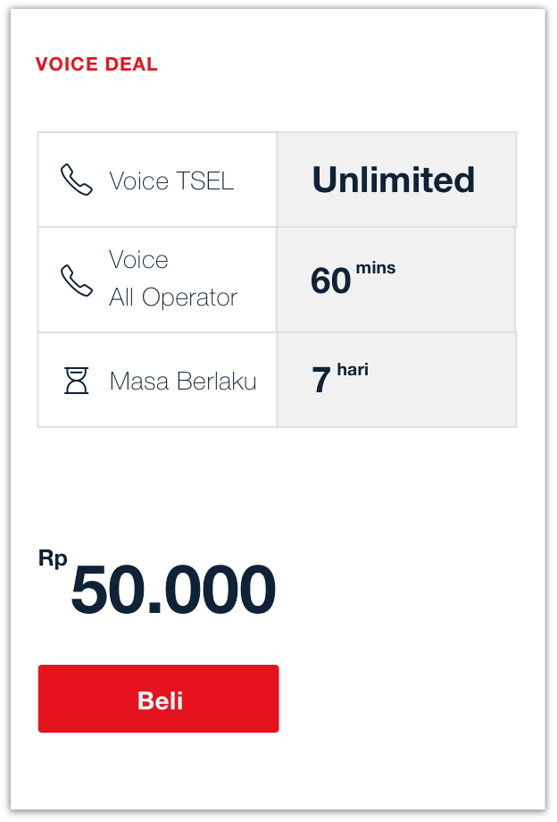 Aktifkan paket Voice Deal sekarang dan nikmati telepon tanpa batas ke sesama Telkomsel serta tambahan kuota ke operator lain.